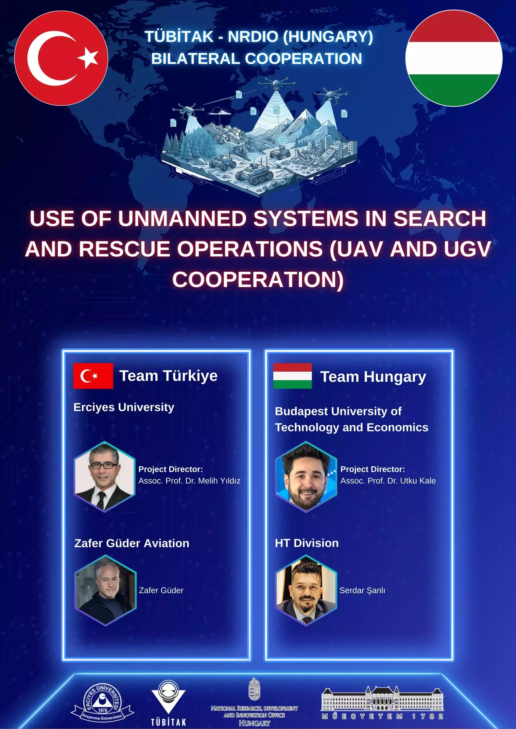 TÜBİTAK (Türkiye) ve NRDIO (Macaristan) arasındaki ikili iş birliği programı kapsamında sunulan "Use of Unmanned Systems in Search and Rescue Operations (UAV and UGV Cooperation)" başlıklı projemiz resmi olarak kabul edilmiştir. Bu önemli süreçte ülkemizi ve üniversitemizi temsil eden proje ekibimiz şu isimlerden oluşmaktadır: